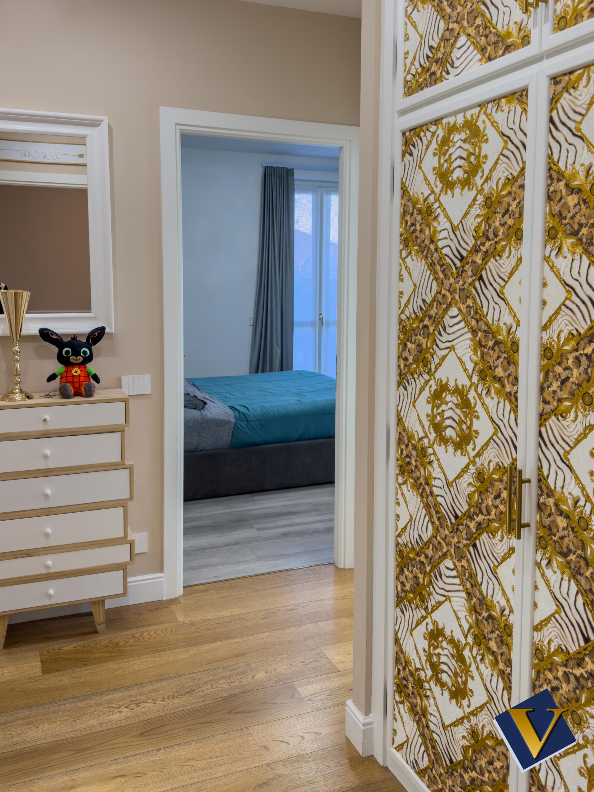 La zona notte è composta da tre camere da letto e due bagni, entrambi moderni e rifiniti con materiali di qualità.