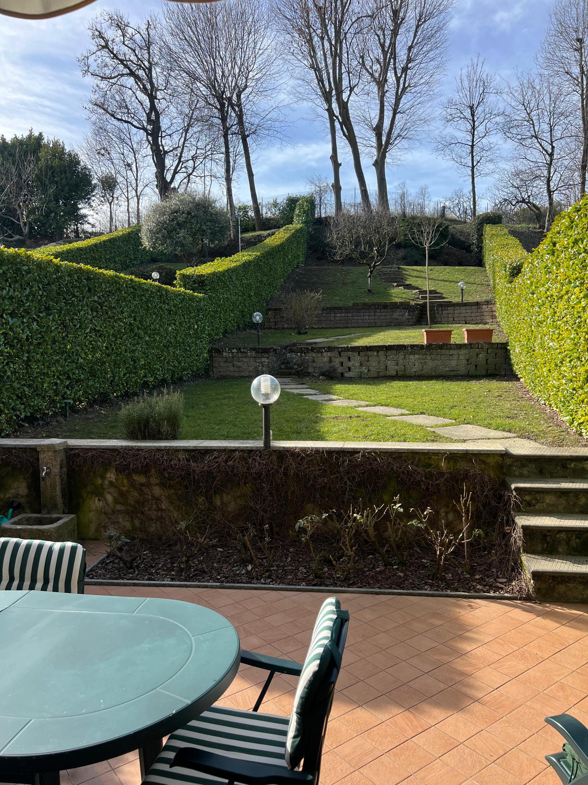 Un giardino privato molto curato, sia sul fronte che sul retro dell’abitazione, ideale per famiglie, momenti all’aperto e cene estive.