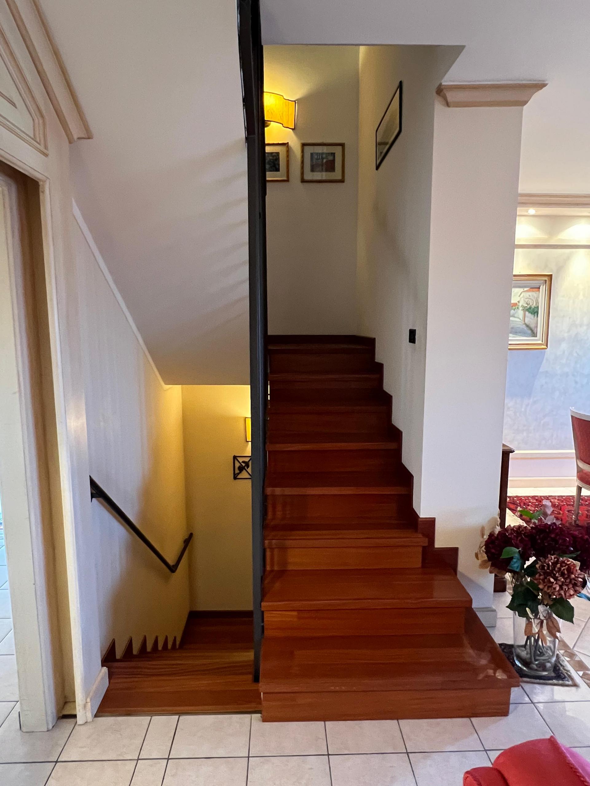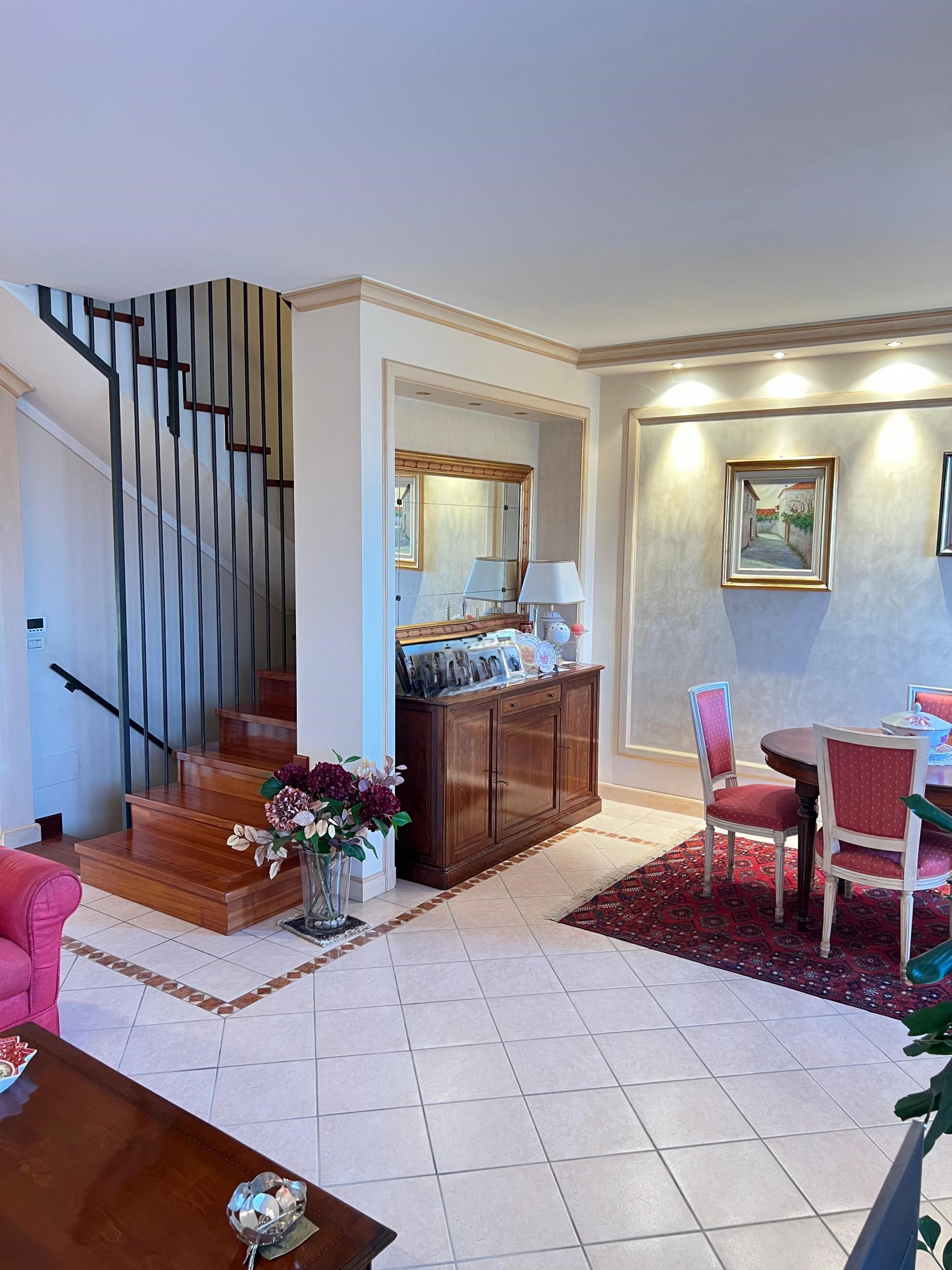 Una comoda scala interna conduce al piano superiore, dove troviamo la zona notte composta da tre camere da letto ben dimensionate e un secondo bagno.